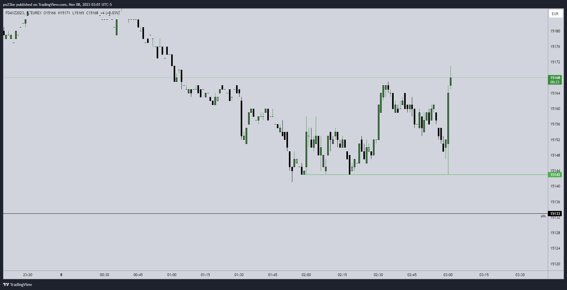der Eröffnung einen Shorteinstieg suchen Richtung 15133. Aber der wird dort bzw knapp unterbei verkauft.