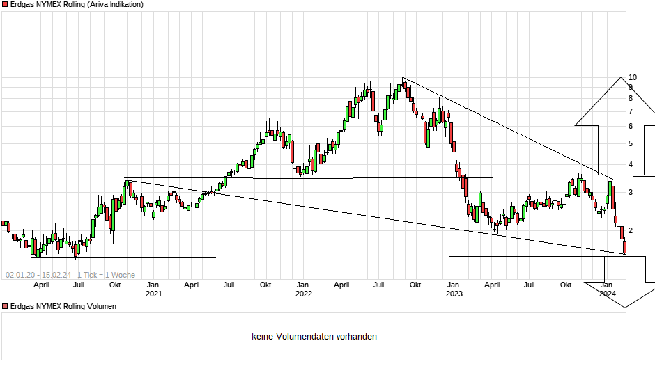 Bärisch (und der Grund für den übergeordneten Druck): US frackt wie verrückt. Zwar im Öl, aber dort bekommt man viel Begleitgas, was quasi kostenlos ist, Das wird nicht ewig gehen, bei den Preisen wird das Erdgasfracking zurück gehen und den Markt räumen. Aber hier reden wir von 3-12 Monaten, je nachdem wann die letzten Kampagnen waren (Fracking Wells nehmen exponentiell ab in der Produktion)