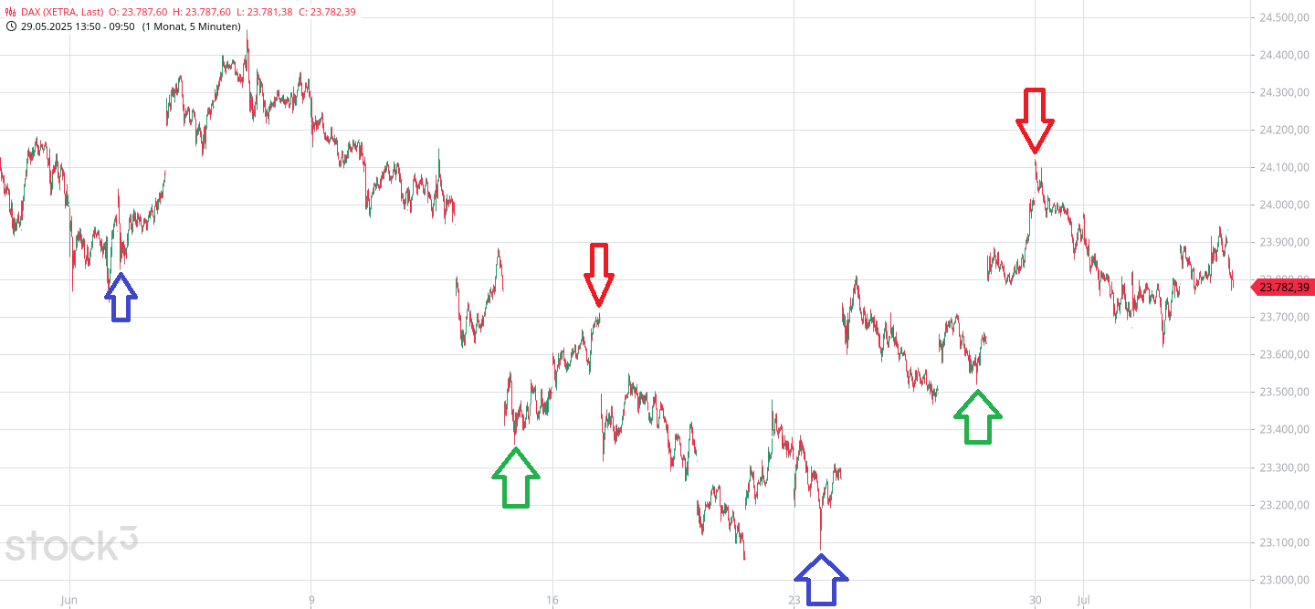 Aktuell hat der Markt ja wieder fix gedreht, als Begründung dient erneut der beliebte Zollstreit, um die Kurse zu drücken. Für Morgen wird ja allgemein eine erhöhte Volatilität erwartet. Mal schaun ob die Range auch für die oberen Ziele im Handelsverlauf gilt, oder ob nur die tiefere Kurse zählen, mit der Absicht, am Dienstag noch deutlicher zu korrigieren?