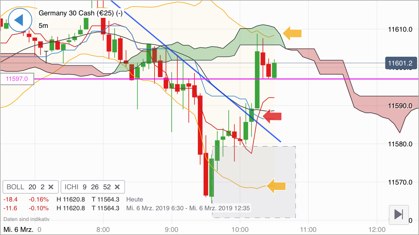 Es ist nun folgendes zu beachten! Obwohl obb sich öffnet sind Tenkan und kijun in neutraler stelle. Habe deswegen meinen sl bei 589 gelegt, da der bruch der 597 einen rutsch impliziert und suf short umschwenkt. Nur tenkan kann das long set up retten.