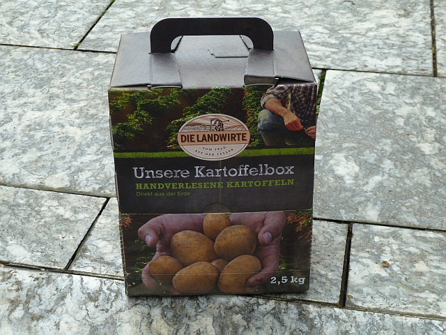 Also hinten in der Kiste sind Löcher drin. Da kann man sehen, ob soweit alles OK ist. Die Kartoffelgröße ist von-bis angegeben, Sorte, Handelsklasse usw. Das was dazu gehört. Betrachte ich mir die Preise und Größen der Kartoffelangebote, so sind es meist 1,5 bis 2,5 Kg Packungen. Preise so von 1,79 bis 2,79.