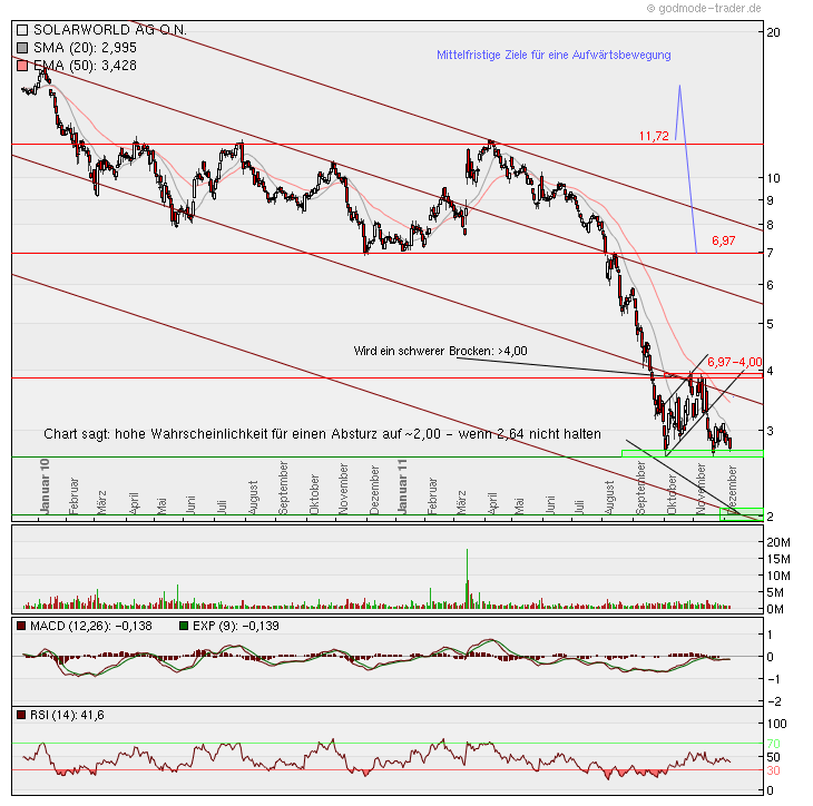 sicherlich wird es solarworld in 3 jahren noch geben und sicherlich werden sie qualität mit 19% wirkungsgrad produzieren. Aber das werden die chinesen auch tun vielleicht sogar noch besser. vorsprung durch technologie wird in zukunft nicht der wirkungsgrad sein sondern eher so sachen wie kleinsysteme (modul+speicher+intelligenter steuerung) oder dachintegrierte systeme oder fassadenmodule. da sehe ich eher die chancen der deutschen solarindustrie. solon hat mit ihrem kleinsystem den schritt in die richtige richtung gemacht. bei solarworld gibts glaub ich ähnliches. auf dem gebiet können sie den chinesen zeigen was deutsche innovation und technologien wert sind.