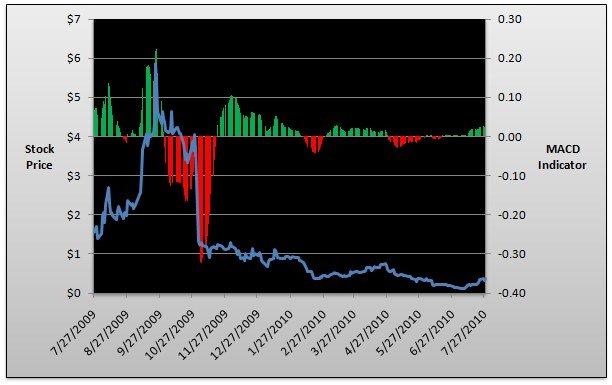 Below, you can find a current chart of YRC Worldwide's MACD profile: