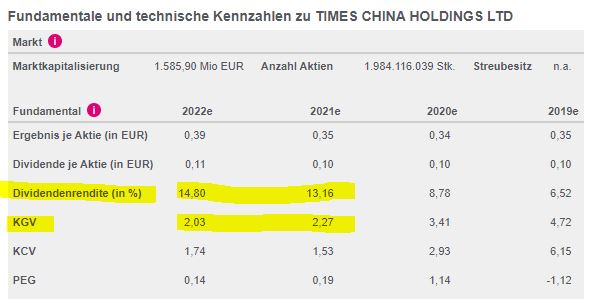 Ich werde morgen hier mit einer ersten, kleinen Position einsteigen. Zwar gefällt mir die Entwicklung des Cashflows nicht sonderlich, aber ich halte das Unternehmen insgesamt für solide genug aufgestellt, seine Zukunft zu meistern. China hat die Coronakrise bislang gut im Griff und ich bin zuversichtlich, daß Times China Holdings sich hier mit dem Gesamtmarkt weiter voranarbeiten wird.