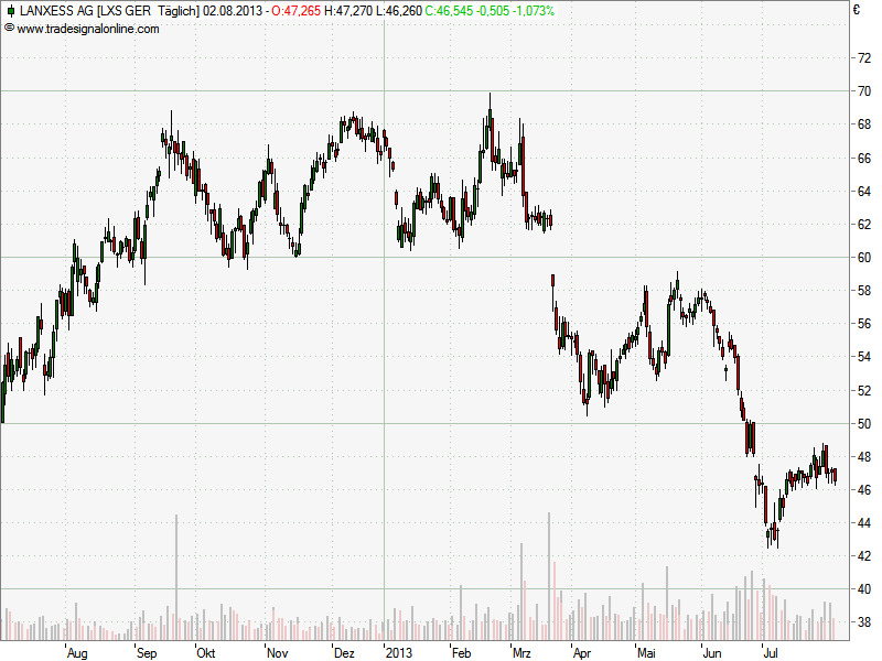 Es kann gut sein, dass Lanxess nochmal etwas runter geht, wenn der Dax im Spätsommer oder Herbst konsolidiert. Aber auf lange Sicht hat die Aktie ein gutes Potential.