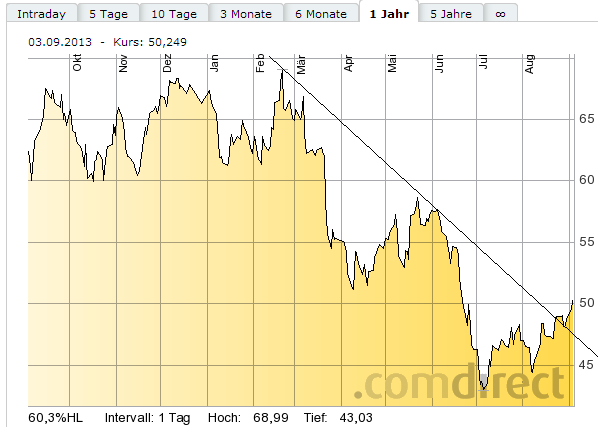 Der DAX ist ja ein Schwindel-Index. Die Dividenden werden mit einkalkuliert. Daher sieht er höher aus als er ist. Beim DAX-Kursindex würde das Allzeithoch viel höher liegen. Soweit ich weiß, irgendwo zwischen 9.500 und 10.000. Also ist noch reichlich Luft nach oben. Werte wie Lanxess haben ein besonders hohes Nachholpotential, das sie stark abgestraft wurden. Die Versorger und K+S sind Sonderfälle. Hier weiß kein Mensch, wie es weiter geht. Aber bei Lanxess bin ich optimistisch.