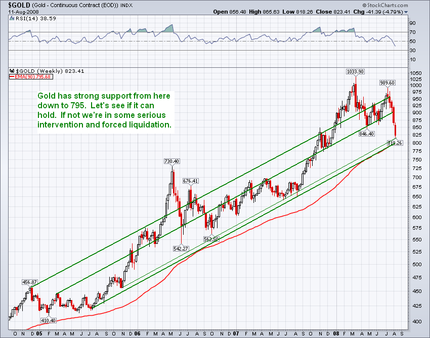 On July 15th the US Dollar Index closed at 71.87, the lowest close since reaching its record low in April. This index was in the process of breaking down, and in fact it had actually fallen out of its uptrend channel on the following chart.