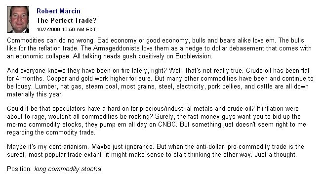Dass genau dies jetzt geschehen soll, versuchen Wall Street, Fed und Co. samt Medien wie WSJ dem unbedarften Beobachter zu suggerieren. Bei einer solchen "gesunden" Inflation durch starkes Wirtschaftswachstum würde natürlich auch die Nachfrage nach Rohstoffen steigen. Der deutliche Anstieg bei den Rohstoffpreisen in den letzten Tagen geht mMn darauf zurück, dass Trader sich mittels ETF darauf einschießen, weil sie den Spin-Doktoren glauben. Bei Street.com hat Rev Shark gestern ausdrücklich den Kauf von UNG (siehe # 214) empfohlen.