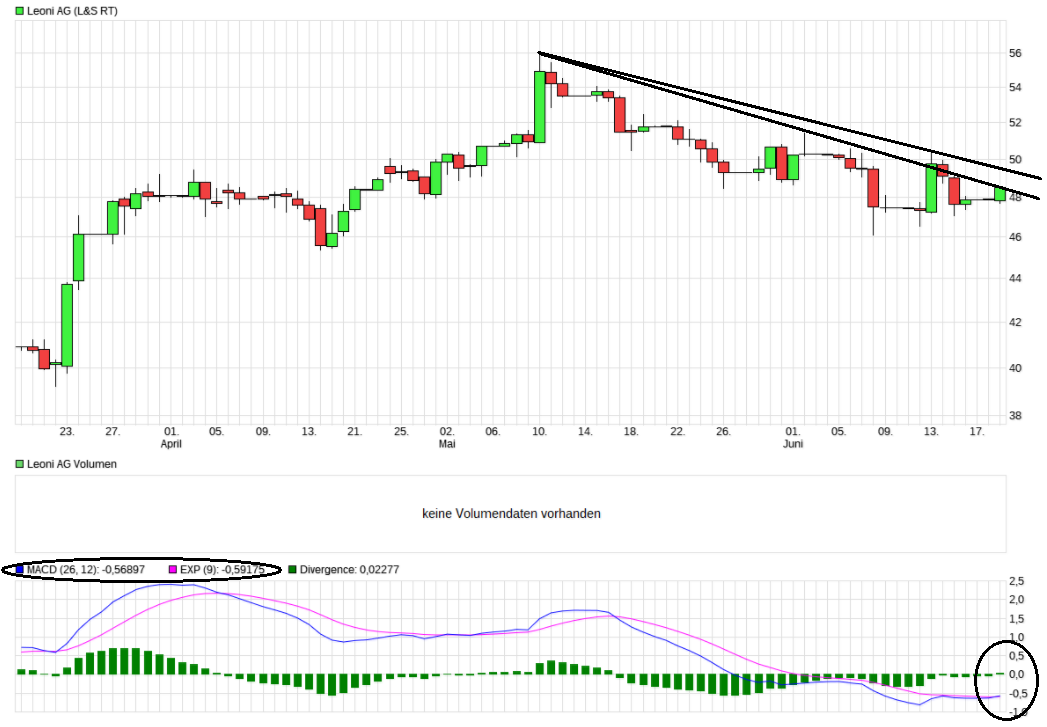 dass es Leoni aus eigener Kraft schafft und nicht nur von dem heutigen grünen Gesamtmarkt mitgezogen wird. Ein langsamer stetiger Anstieg wäre sehr wünschenswert. Wenn der heutige Kurs nicht mehr weit zurückfällt, haben wir heute wieder den kurzfristigen Abwärtstrend gebrochen, hoffentlich diesmal nachhaltig.