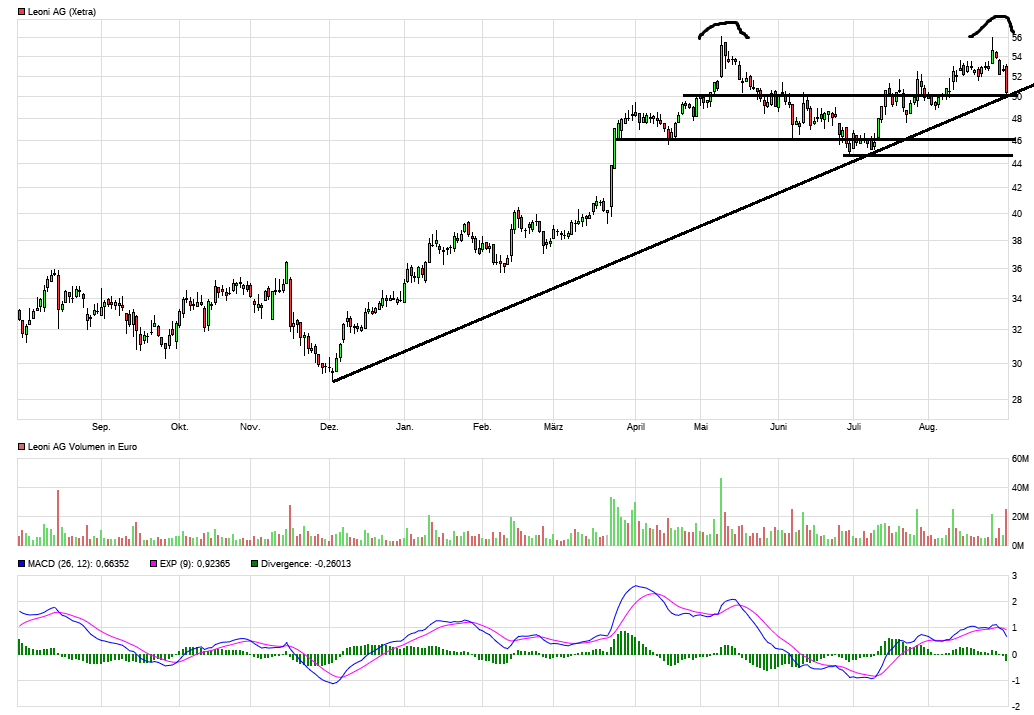 Das MDAX-Unternehmen korrigierte die Guidance für den Gewinn vor Zinsen und Steuern (EBIT) für das Geschäftsjahr 2017 auf 190 bis 210 Mio. Euro nach oben. Die Ergebnisse in der ersten Jahreshälfte 2017 hätten über den Erwartungen des Konzerns gelegen, begründete Leoni die Prognose-Anhebung. Bisher hatten die Nürnberger beim EBIT mit einer Bandbreite von 180 bis 200 Mio. Euro gerechnet.