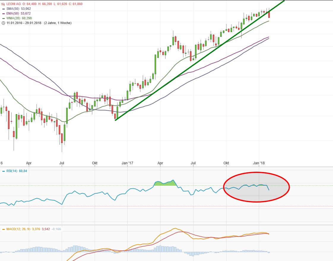 Analysten senken langsam den Daumen, was den Kurs aktuell drückt. LEONI sollte also richtig gute News liefern um kurzfristig weiter zu steigen. Was jedoch gut ist, dass die alten Hochs locker überwunden wurden. Kurzfistig kratzt man jedoch am Aufwärtstrend. Fallen die 63,50 wieder, ist der Weg nach Süden frei. Eine Analyse der WIKIS ergab auch, dass viele schon auf fetten Gewinnen sitzen oder gerade erst eingestiegen sind, was selbiges auch wieder bestätigen würde.