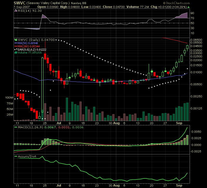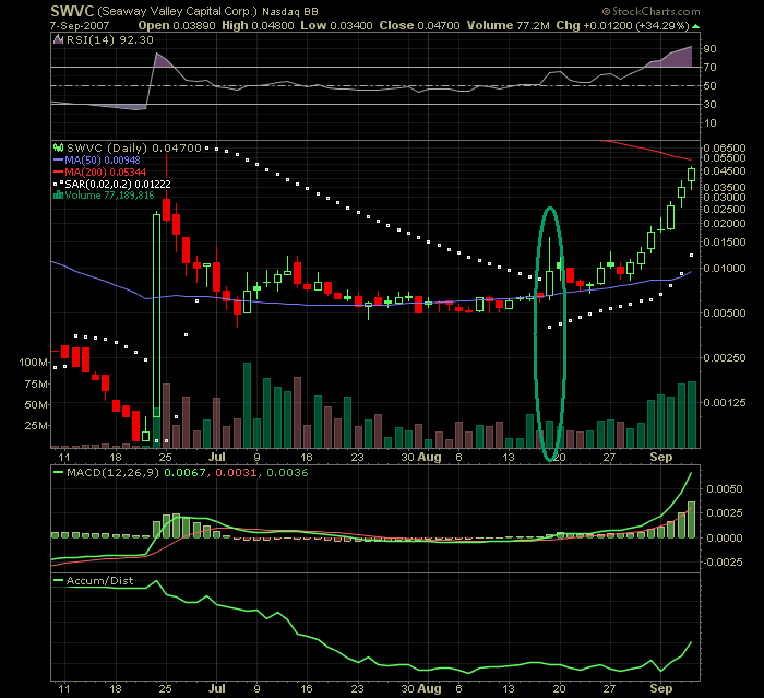 Diese Woche stieg der Kurs in den USA(Heimatbörse) von 0,0175 Dollar(31.08) auf 0,047 Dollar(07.09).Das entspricht einem Plus von 168% in 4 Handelstage bei stetig steigendem Handelsvolumen.