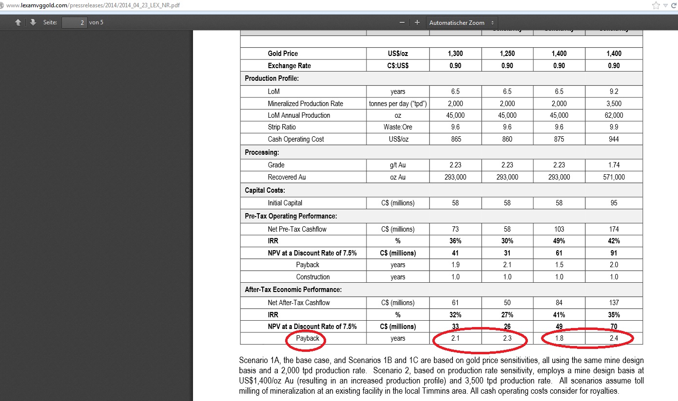 dass die Neuberechnung der Wirtschaftsstudie (PEA) basierend auf einem Goldpreis von 1200$