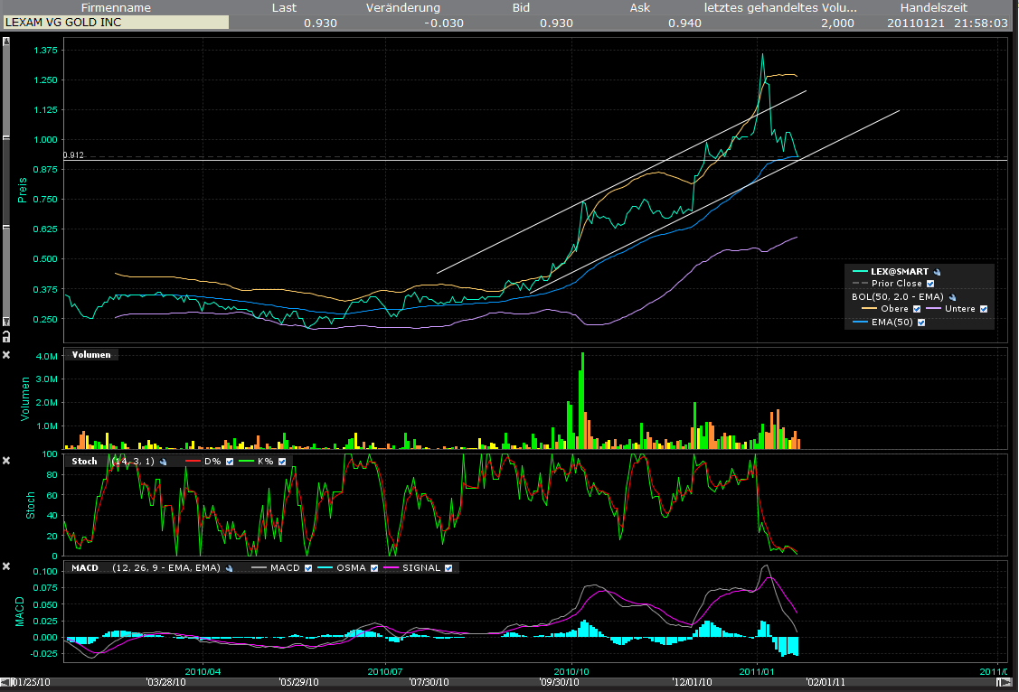 Sollte LEX-VG Ende nächster Woche unter 0,90 CA$ schliessen, bekommst Du von mir eine Kiste Paulaner. Gib mir bitte per BM Deine Kontoverbindung, damit ich Dir das Geld überweisen kann.