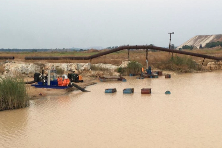 A five ton Allight Sykes CP300 high volume dewatering pump was commissioned at Roche Dure early in September 2019, with almost immediate results on reduction of the water level at Roche Dure. This pump has been combined with a pontoon based spindle pump, which can be maneuvered over deeper ‘holes’ in the pit floor to ensure that there are no flooded, pit floor depressions that will come to light as the water level drops further.
