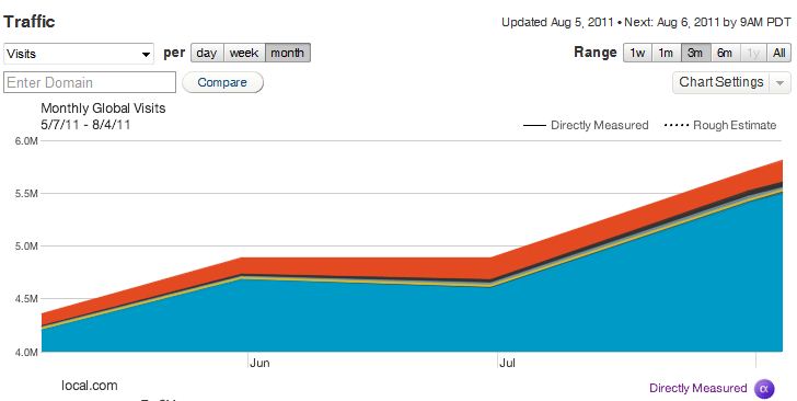 Dass das nur ein Bruchteil sein kann, schließe ich aus einem Vergleich mit Google Trends, Google/doubleclick Ad-Planner, Compete und den Daten von Local.com selbst (s.o.).