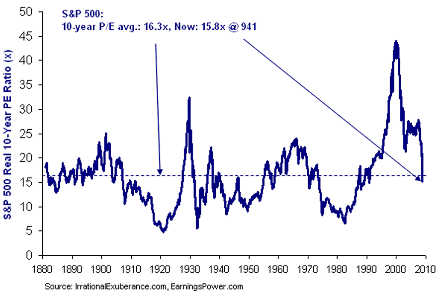 The lesson of this chart is that while the S&P is a lot less expensive than the Himalayan levels of 2000, it is still not cheap at 23 times earnings. Indeed, 127 years of stock market history shows just three other times when real 10-year P/E ratios breached current levels: 1901, 1929 and 1966. In each instance, the multiple later contracted to below 10 times. Mean regression can hurt!