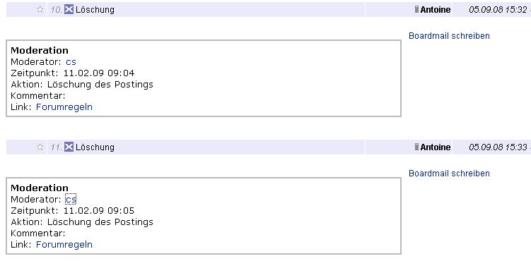 "...@ Antoine , was soll der Mist ?? ..." Ich bitte Dich höflichst nicht auf dieser agressiven, persönlichen Ebene mit mir zu kommunizieren, sondern sachlich zu schreiben, sofern Dir überhaupt an einer Diskussion gelegen ist.