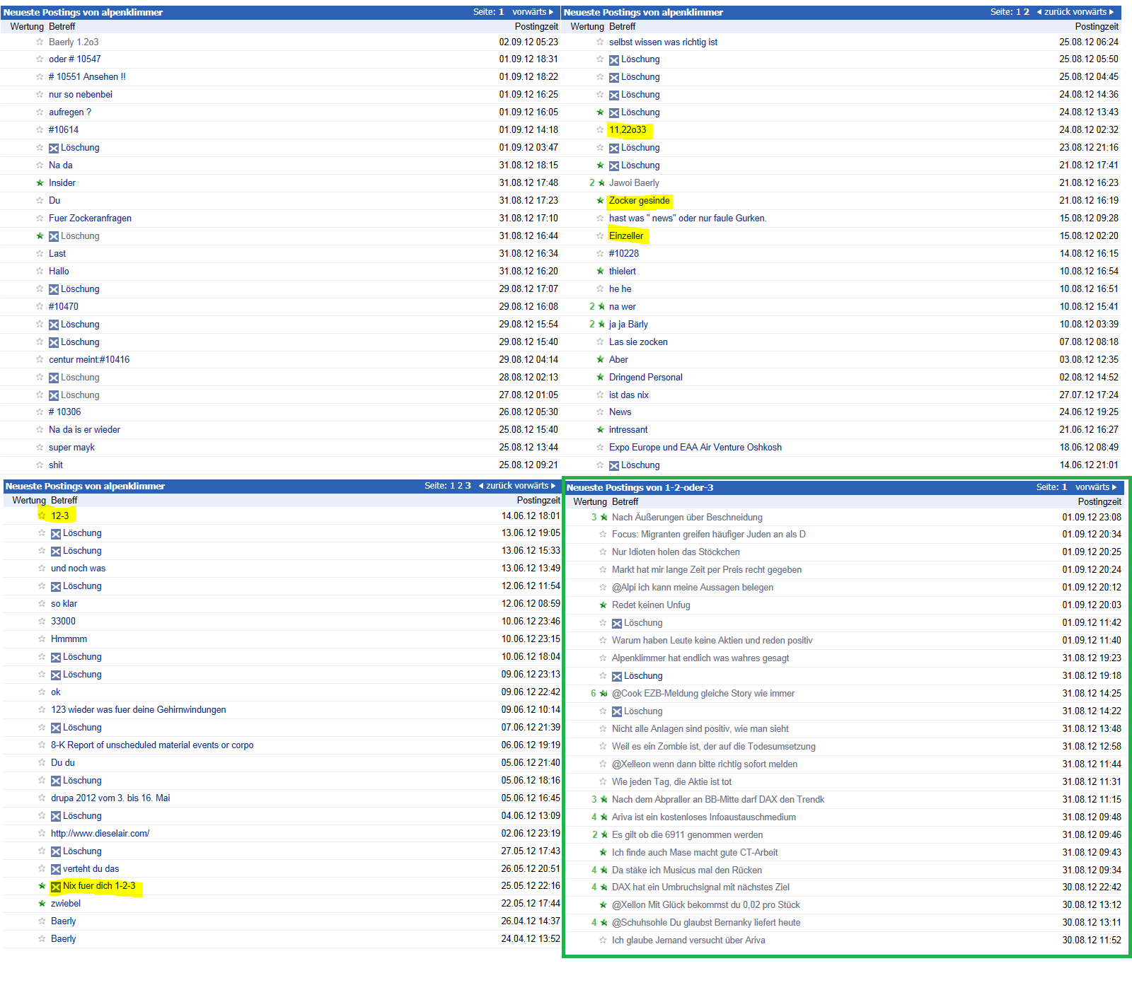 Wer will kann es alles nachlesen, also einfach zurückblättern.