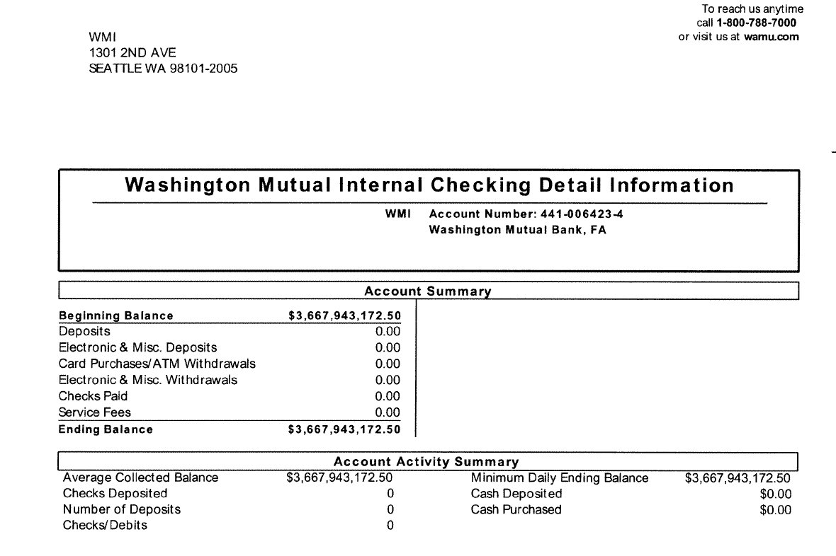 Letzter Monat, WMI verklagt die Federal Deposit Insurance Corp, dem zufolge die Behörde zu Unrecht verweigert potenziell Milliarden von Dollar in Forderungen gegen die Holding-Gesellschaft der ehemaligen Bank-Einheit. Der Anzug auch behauptet, die falsch FDIC verkaufte die Bank Tochterunternehmen, JPMorgan Chase für weniger als sie haben könnte geholt in einer "geraden Liquidation."