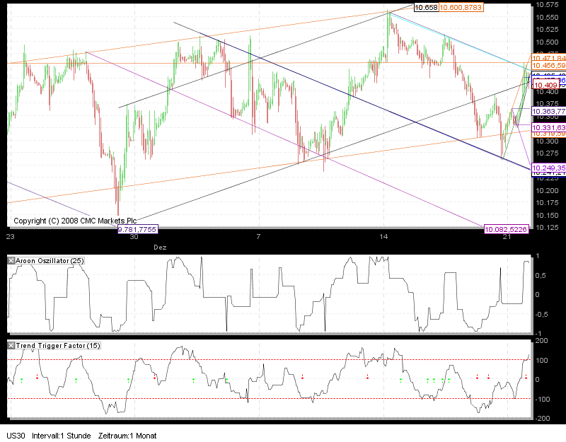 Auch jetzt noch habe ich tiefere Kurse auf der Watch obwohl sich der Dow seitlich aus dem Abwärtstrend schiebt, wieviele Bullen werden sich jetzt wohl positionieren? Auch wenn jetzt ein schneller Anstieg auf 10450-10470 kommt so werde ich nicht aussteigen, wieviele Longorder werden dort wohl warten?