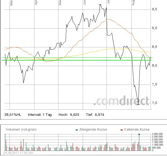 Das sorgte gestern für einen Kurssprung von zwischenzeitlich mehr als 18 Prozent. Vor einem halben Jahr hatte der Vorstand noch eine längere Talfahrt angekündigt. Jetzt rechnet Freenet stattdessen für das laufende Jahr mit einem um Einmaleffekte bereinigten Betriebsergebnis von 350 Mio. Euro. Bisher ging man von 325 Mio. Euro aus.
