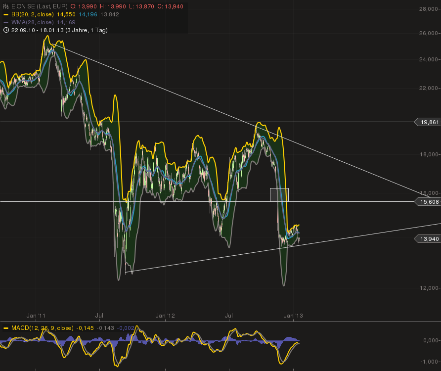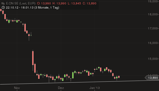 Ich glaube nicht, dass es so kommt wie bei der Coba bzw. Telekom. Die Situation bei der Coba sowie Telekom war grundverschieden: Die Telekom hat durch die Marktöffnung und extreme Konkurenz, die sich bis heute täglich unterbietet, gelitten. Die Banken durch Finanzierungsblasen und Eurokrise. Bin auch in Coba investiert und werde da hoffentlich dieses Jahr über EK kommen. Glaube heisst ja nicht Wissen, aber ich glaube, das EON sein Waterloo hinter sich hat.