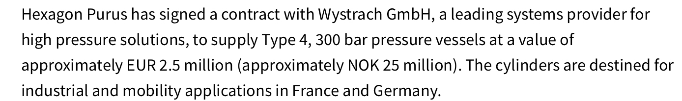 performance type 4 hydrogen cylinders. The scope of the agreement is over a