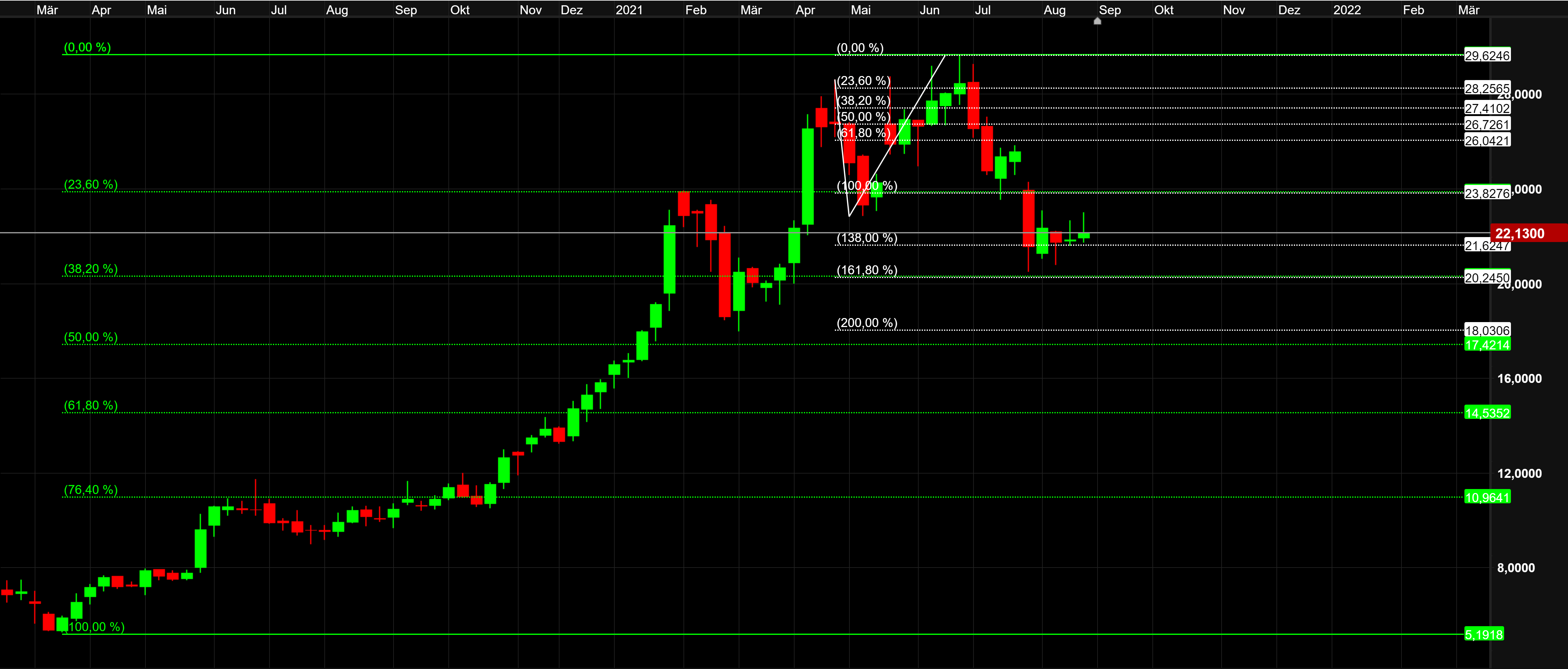 Bestätigung Doppelboden voraus? Die Fibs zeigen euch die möglichen Ziele. Hinfällig bei neuen Tiefs!