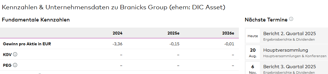 >>Die Branicks Group AG hat im ersten Quartal 2025 einen FFO I (Funds from Operations I) von 11,4 Mio. Euro erzielt, was einer Steigerung gegenüber dem Vorjahr (9,0 Mio. Euro) entspricht<<, https://branicks.com/wp-content/uploads/2025/05/250508_Branicks_Q1_2025_DE_safe.pdf