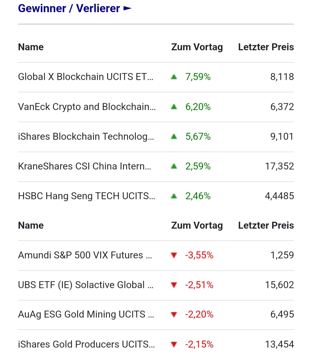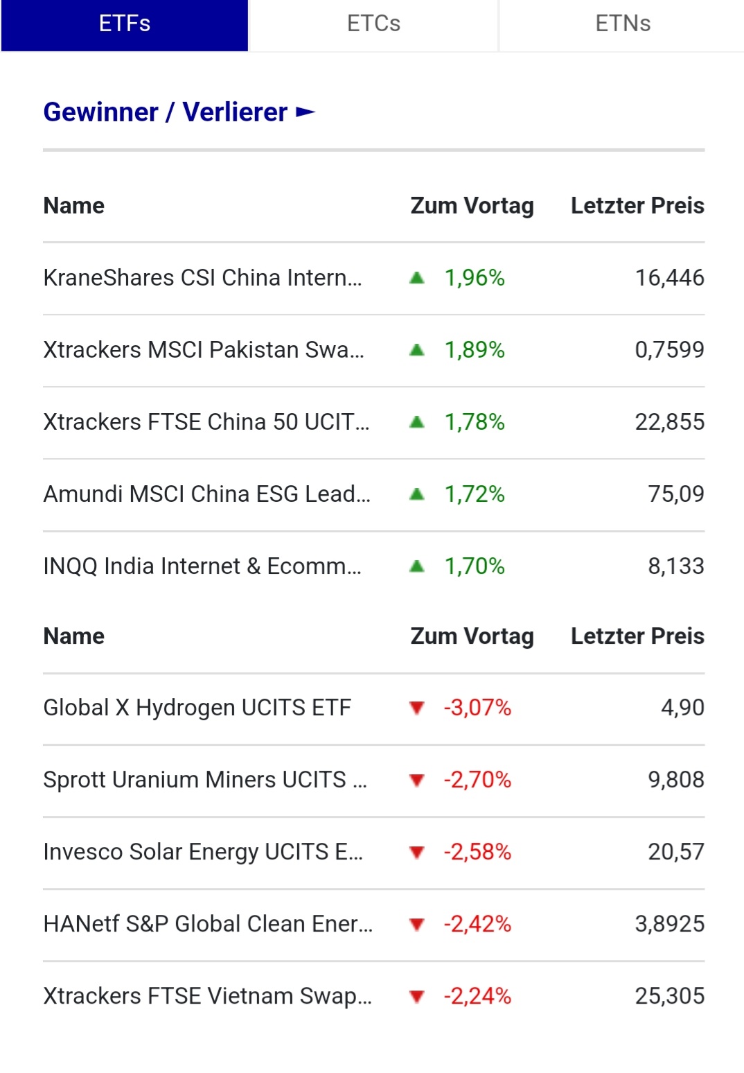 heute wieder allesamt TOP in der Xetra ETF Hitparade.