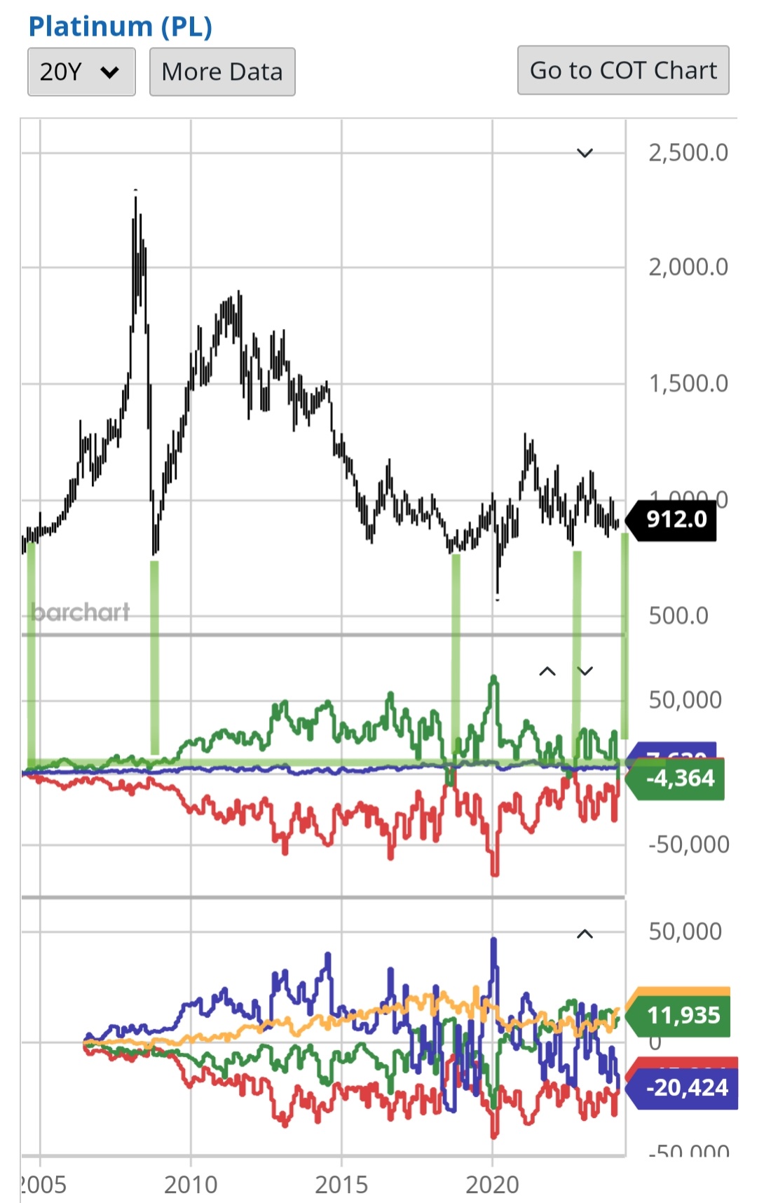 Palladium hat auch seinen eigenen Kopf und die 900$ scheint ein ziemlich starker Boden zu sein. Der CoT sieht mit immer neuen Shortrekorden der Spekulanten und entsprechend starken Longpositionen der Commercials auch bullisch aus. Hier habe ich nun die 2. Kiste (wishdomTree ETC) angefangen zu füllen.
