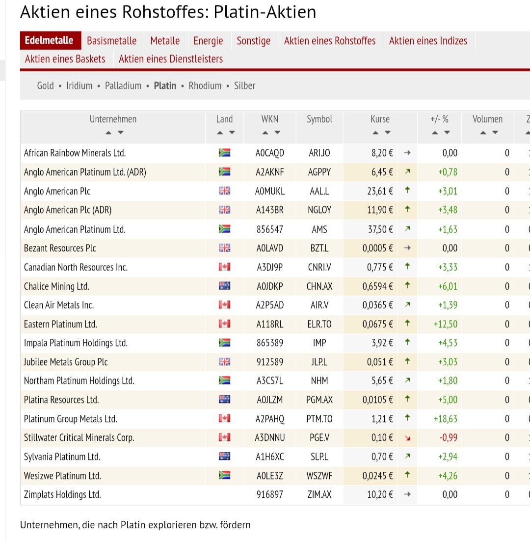 PGM Minen, da ist Amplat billig und wird nach Do. Fed weiter eingesammelt. Für die 2. Kiste (Impala) ist es noch zu früh.