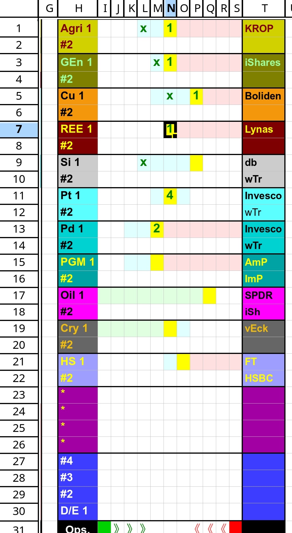 Zu CO2 Zert, KROP, DMAT, BC und PGMs wird nun eine erste Tranche ES50-short gekauft.