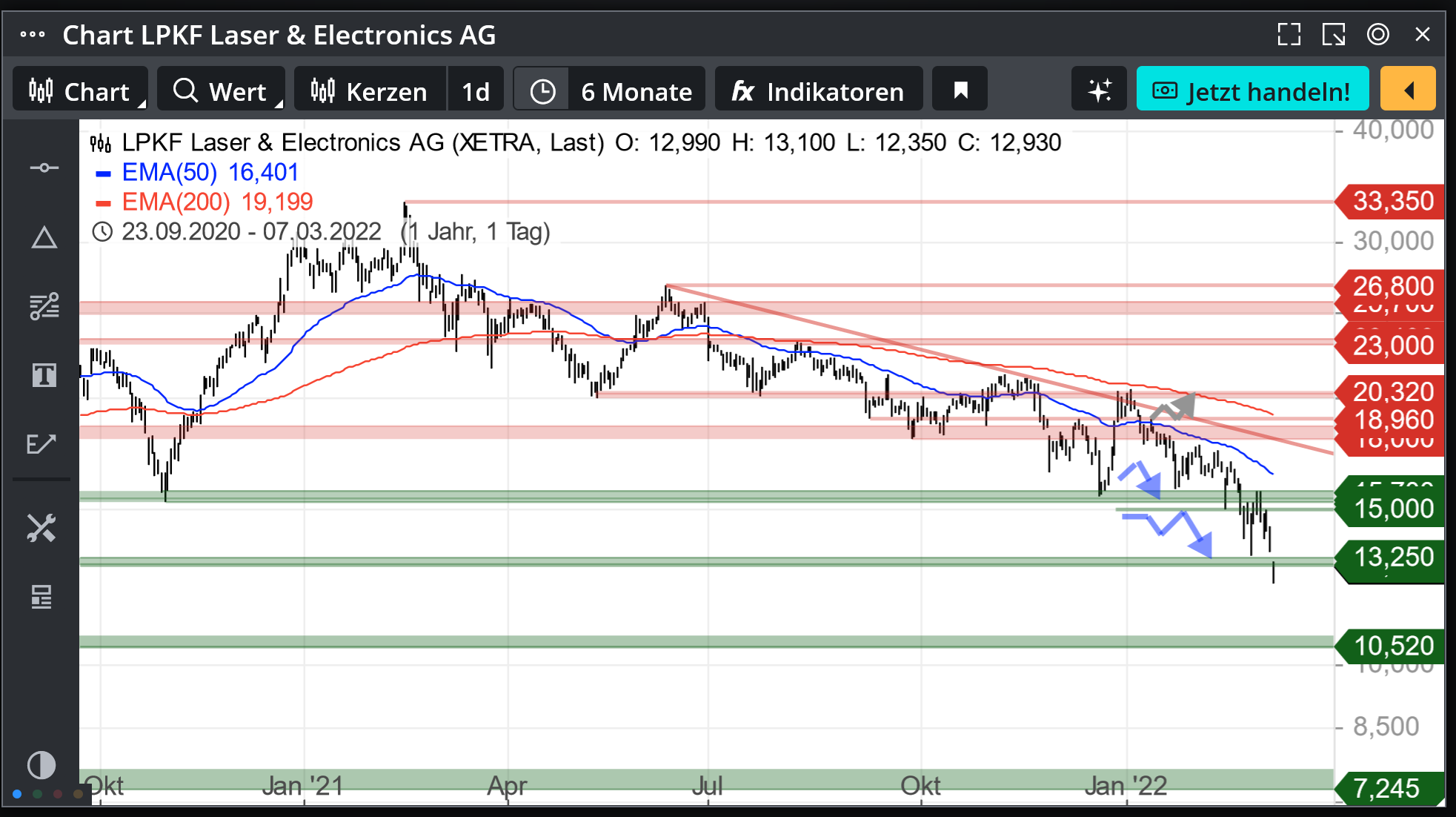 Da muss man die Zeit überbrücken mit Aktien die einen realen 2022 KGV von 3 haben und aktuell profitieren. Und nachdem LPKF nun die starke Unterstützung bei 15 gebrochen hat, ist 13 das nächste abwärts Ziel.