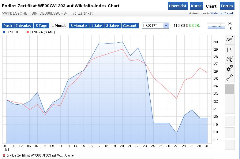 Die Informationen hier in dem Forum stellen weder ein Kauf- noch ein Verkaufsangebot für die behandelten zwei Zertifikaten dar. Trotz Anlageerfolg, können die Wikifolio-Zertis wertlos werden, falls Lang & Schwarz AG zu einer finanziellen Schieflage kommen sollte. Hier hilft es dann auch nicht, dass
