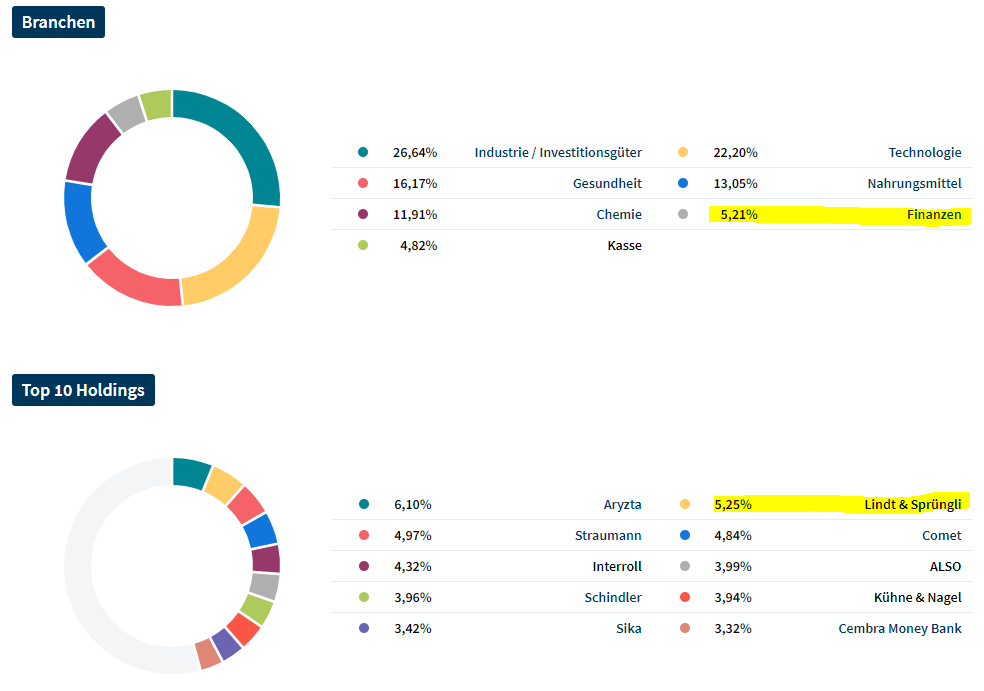 Momentan vergleiche ich noch ein wenig mit dem - ebenfalls sparplanfähigen - Fonds Vontobel Swiss Small & Mid Cap Equity - B CHF ACC (WKN 796570). Bei dem gefällt mir u.a. der rund 9%ige Anteil an Lindt & Sprüngli recht gut - die Gebühren hingegen weniger. Zudem ist er per Definition ein Thesaurier; allerdings hat er ein Fondsvolumen von rund €265 Mio aufzuweisen und mir sagt der Hintergrund des Hauses Vontobel sehr zu (seit 1924 am Markt, Familienunternehmen).