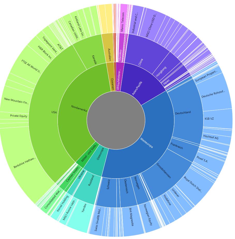 Mit einem Anteil von nur 0,05% am Gesamtvermögen (inkl. Eigenimmobilien) macht das Investment sich bisher kaum bemerkbar, aber der ETF wird ja noch weiter bespart und ich begrüße die über ihn erzielte, zusätzliche Diversifikation. In der nachstehenden Abbildung wäre er auch mit Markierung nicht zu erkennen, daher werde ich noch einen zweiten Beitrag posten, um die Region "Japan" darin noch näher aufzuschlüsseln.