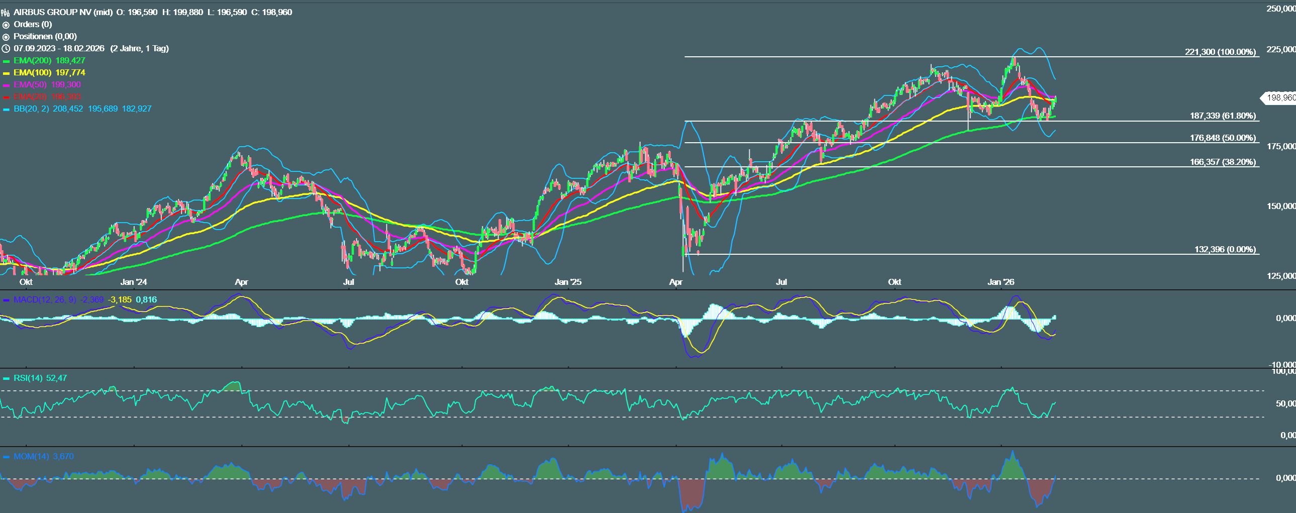 Der Knackpunkt ist die schlechter als erwartete Produktionsprognose für 2026 ff.( Airbus redet jetzt nur von 870 Maschienen und der Markt hat bislang mit 900 Maschinen in 2026 gerechnet) , weil weiterhin die gleichen Probleme bei der Triebswerkbeschaffung zu sehen sind wie in 2025, wo man auch schon bei der Jahresprognose deswegen im Herbst zurückruden mußte. Und so wie es aussieht, wird sich so schnell auch nichts daran ändern. Somit auch möglich, daß man dann im Herbst 2026 sogar wieder die jetzt gemachte Prognose nochmal reduzieren wird. Gleichzeitig gibt es im Bereich Satelliten härteren Wettbewerb und auch das deutsch- französische Kampfflugzeugprojekt könnte bald auch vor Aus stehen. Von daher viele Bad News was die Zukunft angeht. Der Kurs straft das natürlich dann ab. Wichtige horizontale Unterstüzung läge jetzt im Bereich 173/177€.