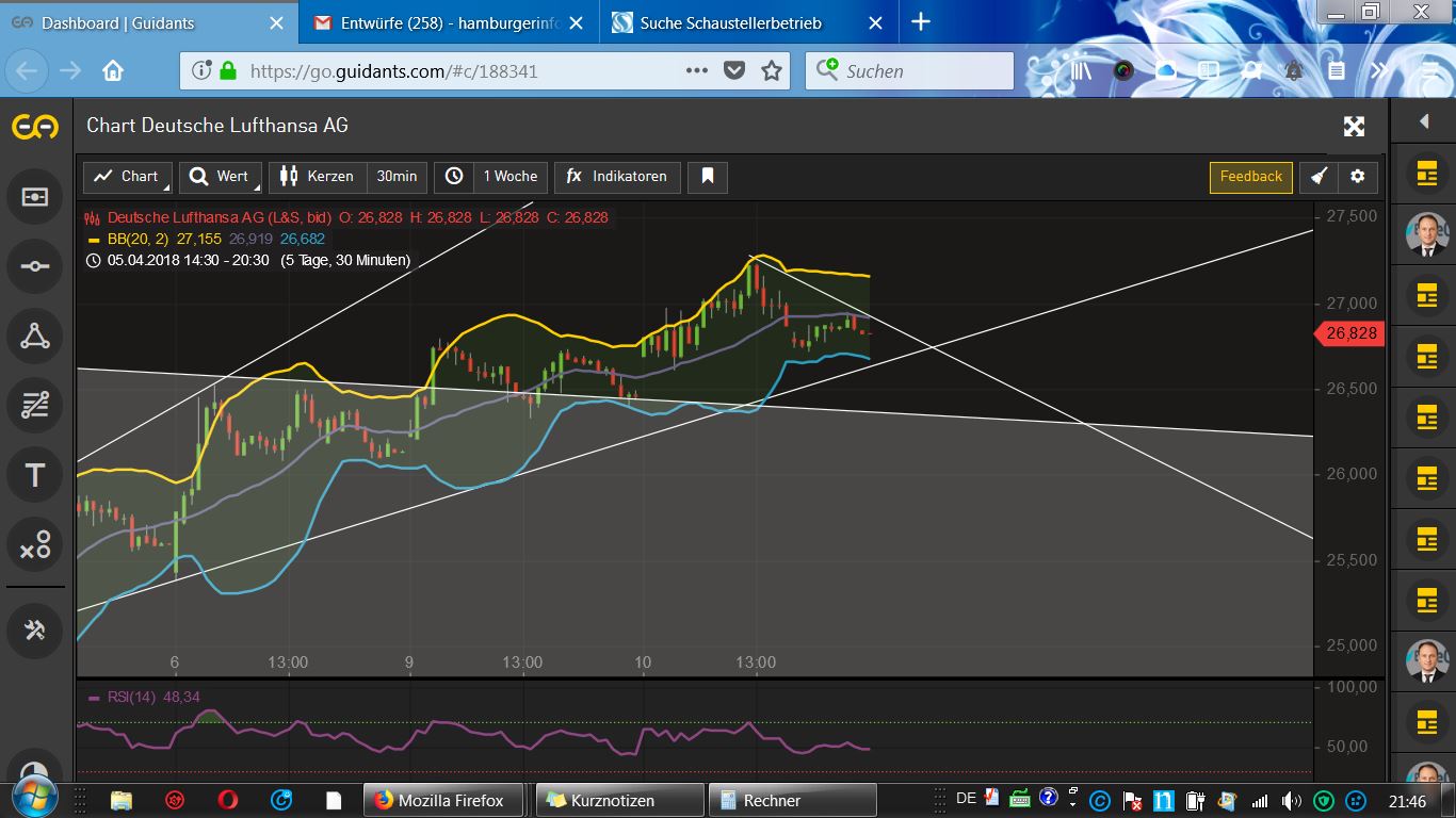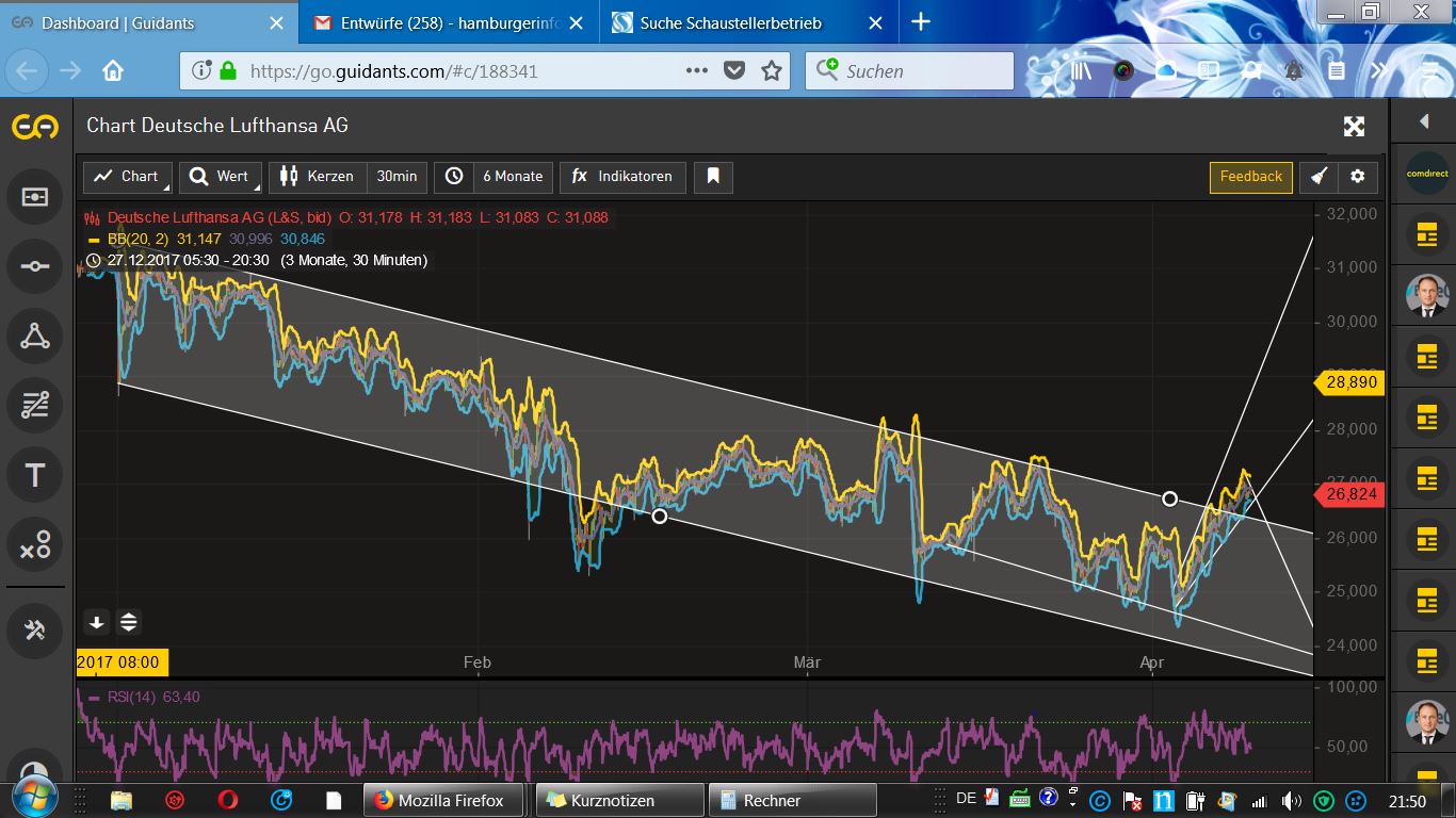 Das Chartbild hellt sich dadurch wieder deutlich auf. Fundamental wird LHA sowieso als günstig bewertet, und die Reisezeit steht vor der Tür. Sollte nix Unvorhergesehenes eintreten, sehe ich das Kursziel bei größer als 30 €. Daumen hoch!