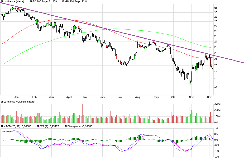 Ich bleibe investiert, ärgere mich aber trotzdem nicht bei 21,60 verkauft zu haben, denn heute hätte ich mehr aktien von Lufthansa kaufen können. So ist halt Börse...