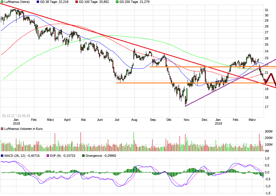 Aktuell könnte man ab einem Niveau von 19,8-20,1 € (sind wir ja heute leicht reingelaufen) mal auf eine Gegenbewegung hoffen. Der Bereich 21,2 bis 21,9 € ist aber jetzt eine sehr starke Widerstandszone. Irgendwie schwer vorstellbar, jedenfalls nicht ohne Unterstützung des Gesamtmarktes), dass der Bereich kurzfristig überwunden wird. Sonst wäre man nach den Zahlen (trotz da noch positivem Gesamtmarkt) nicht durch diesen Bereich gefallen. Das ist halt nicht nur Chartanalyse, sondern eher Psychologie und Sentiment.