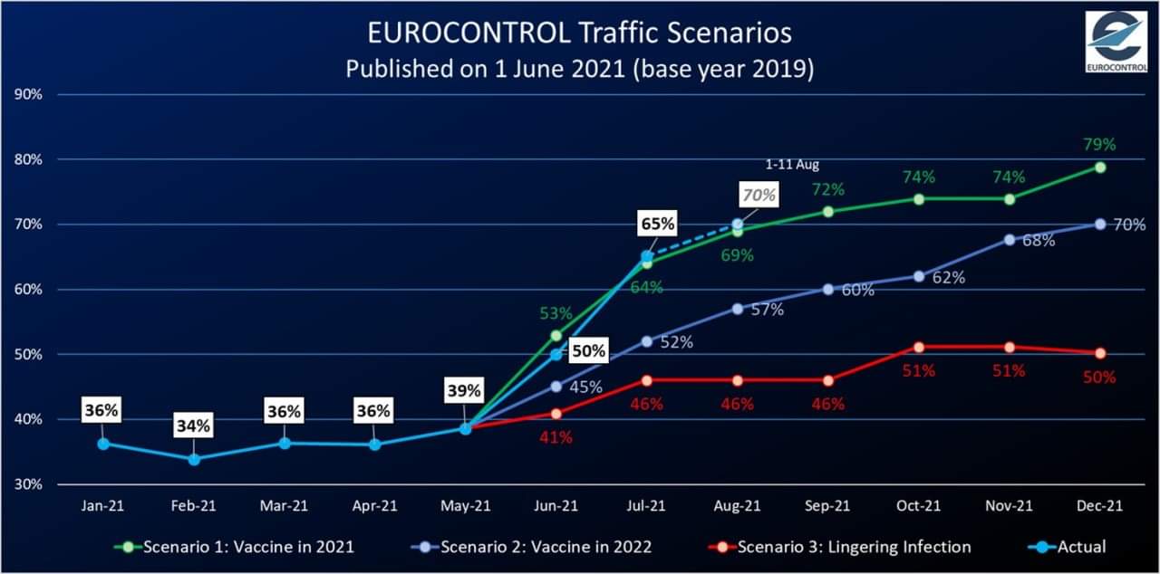 In den letzten Wochen und Monaten seien die Passagierzahlen aufgrund von verringerten Reisebeschränkungen und der saisonalen Urlaubssaison deutlich gestiegen. In Q3/21 erwarte Lufthansa ca. 50% der Kapazität des Vergleichszeitraums von 2019 anzubieten. Eine Steigerung auf ca. 60% sei für Q4/21 geplant unter der Voraussetzung, dass die USA die Einreisebestimmungen lockern würden und es zu einem sichtbaren Anstieg der Geschäftsreisenden komme. Bez. Geschäftsreisen erwarte der Analyst einen unmittelbaren Anstieg im Herbst ("Nachholeffekte"), jedoch ein nachhaltig niedrigeres Niveau im Vergleich zu pre COVID-19. Die Änderung des Verkehrsmix aufgrund eines geringeren Anteils an Geschäftsreisenden führe zu niedrigeren Erlösen je Passagier.