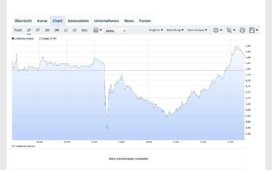 Nach der zweiten Gewinnwarnung der Lufthansa (Lufthansa Aktie) vom Freitag tun sich die Anleger zu Wochenbeginn weiter schwer mit den Aktien. Nachdem die Papiere der Kranich-Linie vor dem Wochenende nach zwischenzeitlichem Rutsch auf ein Tief seit 2022 sogar im Plus geschlossen hatten, ging es am Morgen wieder etwas abwärts. Aber auch jetzt fanden sich nach gut 3 Prozent Abschlag wieder Käufer, die das Minus eindämmten.