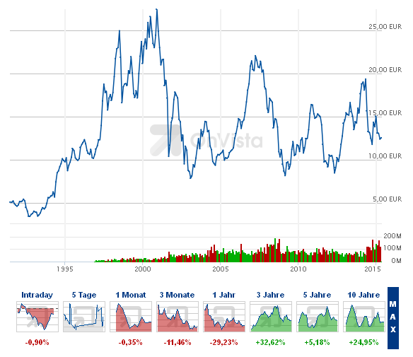 Die 100DM bzw. 50EUR sind nur die halbe Wahrheit. Es gab mal einen 1:10 Aktiensplit. Wir kommen also eher von 5EUR und nicht von 50EUR... Wer die Aktie schon sehr lange hält, müsste eigentlich gut im Plus sein. Es gab ja auch ordentliche Ausschüttungen in der Vergangenheit.