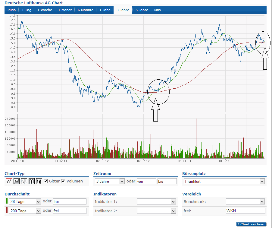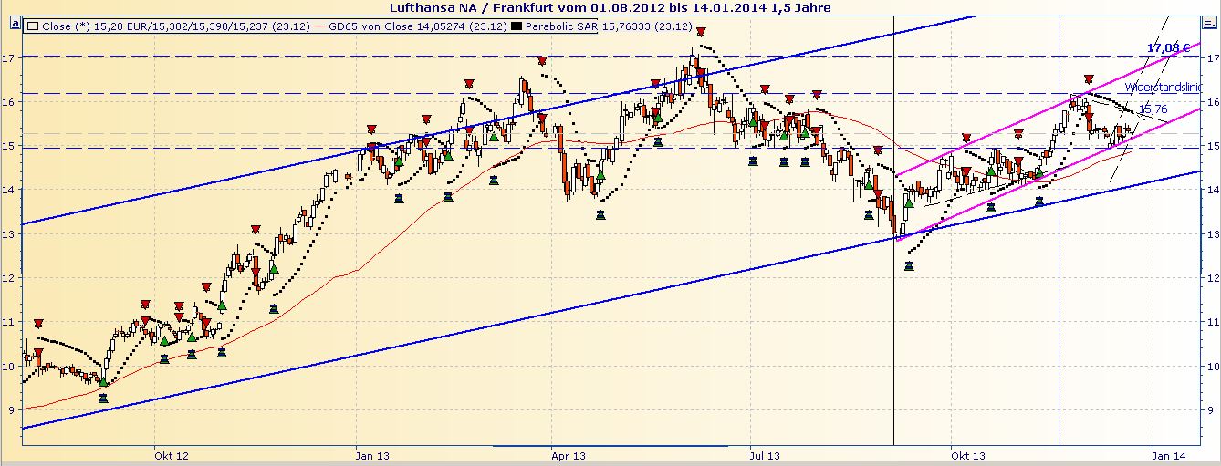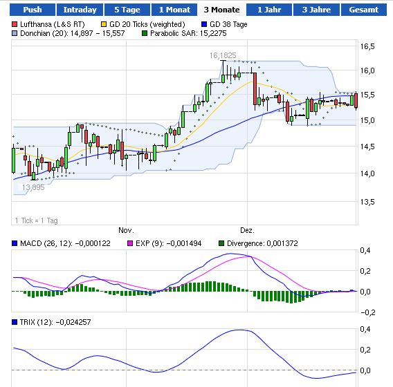 Nicht gerade euphorisch, aber doch recht konstruktiv ist das aktuelle Kursbild der Lufthansa-Aktie. Im Mittelpunkt steht die Marke von 15 Euro. Neben einer bewährten horizontalen Unterstützung verläuft hier auch die 200-Tage-Linie. Beide Signalgeber zusammen begrenzen derzeit das Risiko und eröffnen ein gutes Chance-Risiko-Verhältnis. Bleibt die Kranich-Aktie im Aufwind, stellt das November-Hoch um 16,10 Euro ein erstes Ziel dar. Darüber rücken das Jahreshoch gut einen Euro höher sowie im mittelfristigen Bereich die Barriere um 18 Euro in Reichweite. Fällt die Aktie unter 15 Euro, dreht die Tendenz auf seitwärts. Kritisch wird es hingegen erst, wenn der Kurs auch bei 13,70 Euro keinen Halt findet.