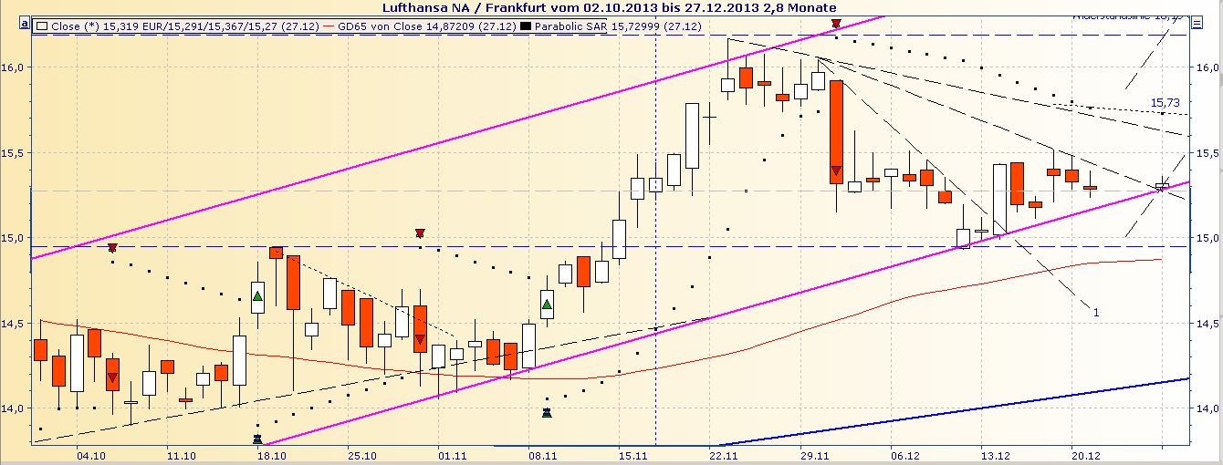 Lufthansa 747-8I Take off Images K65636-05Mit der Kranich-Airline in den Weihnachts- oder Silvester-Kurzurlaub fliegen – wer hätte darauf keine Lust? Der Konzern kann zusätzliche Einnahmen gut gebrauchen, belastet doch der schwache Yen die Einnahmen der Passagiersparte erheblich. Und das Ergebnis im Luftfrachtgeschäft soll 2013 unter das Vorjahresniveau sinken. Für das laufende Jahr prognostizieren Analysten einen deutlichen Gewinnrückgang. 2014 soll es dann spürbar aufwärtsgehen. Einen Tag vor Heiligabend ist die Lufthansa unsere 23. Aktie im DAX-Adventskalender. Morgen legen wir natürlich eine Pause ein, dass nächste Türchen öffnen wir am 1. Weihnachtstag.