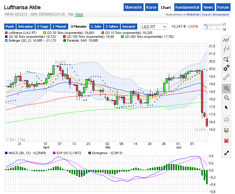 Was den kurzfristigen Trend angeht hast Du vermutlich recht. Ich finde aber nach wie vor, dass eine Firma mit knapp 500Mio Stückaktien und einem avisierten Gewinn für 2015 von 2000Mio EUR (also über 4EUR/Aktie) mit aktuell gut 16,-EUR Einkaufspreis nicht zu teuer ist. Wenn das nicht möglich wäre, hätte Spohr die Trauben noch tiefer gehängt, denn jetzt wäre der Zeitpunkt das zu tun, ohne dass was an ihm kleben bleibt. Außerdem sind 2Mrd EUR Gewinn bei 30Mrd EUR Umsatz jetzt keine Traumtänzerei, sollte machbar sein.