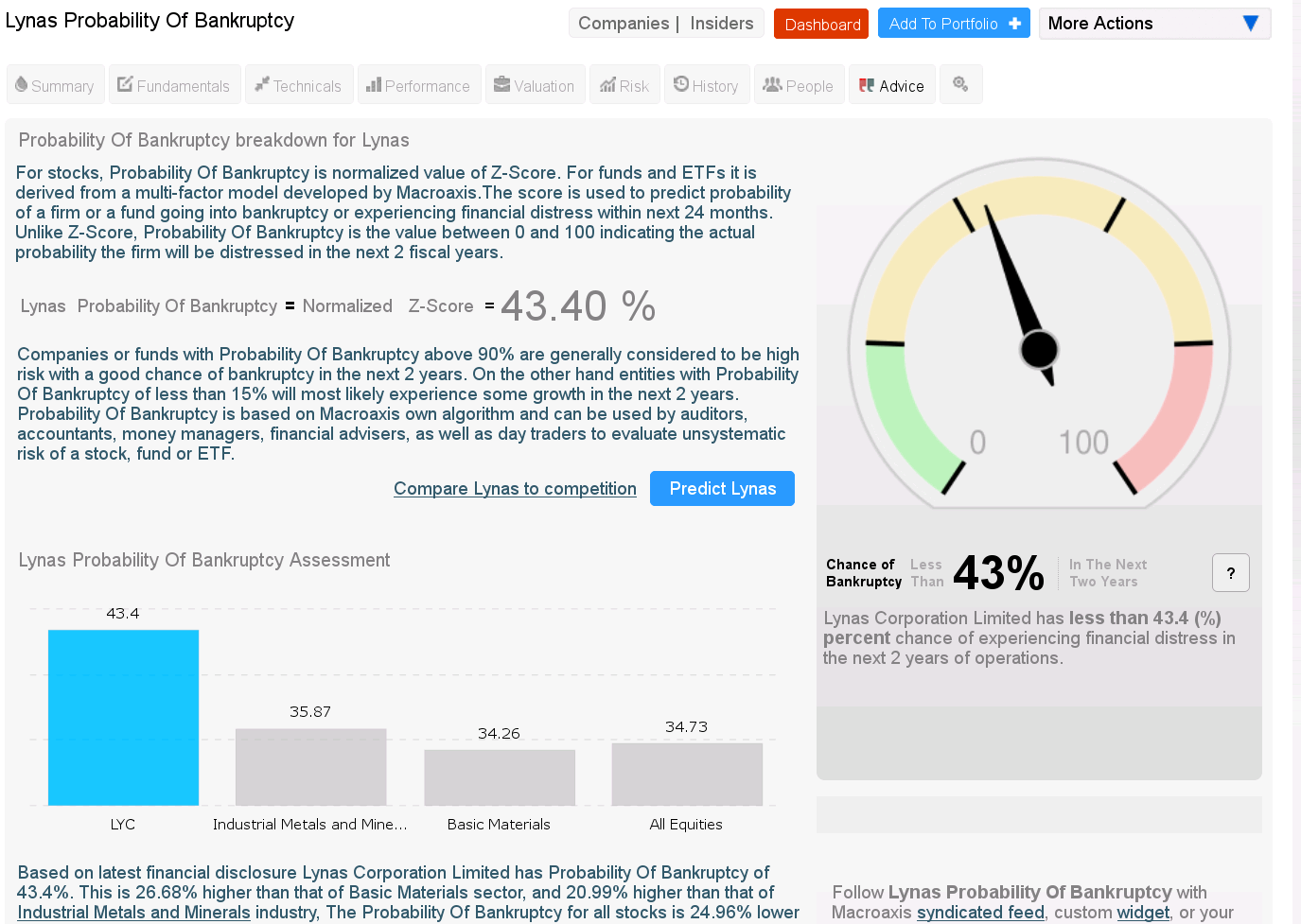 Quelle: www.macroaxis.com/invest/ratio/LYC.AX--Probability_Of_Bankruptcy