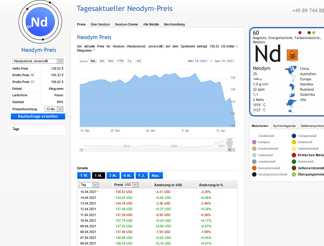Der Marktpreis für NdPr stieg im Laufe des Quartals. Die Nachfrage nach Dysprosium stieg und Terbium